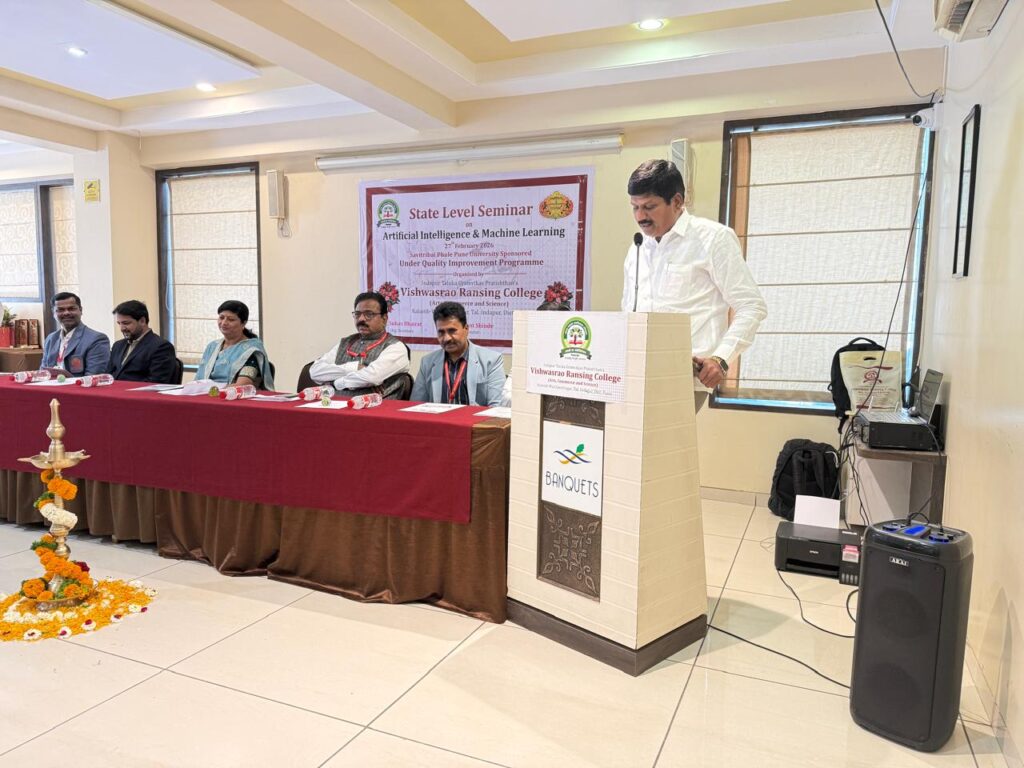 इंदापूर तालुका ग्रामविकास प्रतिष्ठानचे, विश्वासराव रणसिंग महाविद्यालय कळंब-वालचंदनगर ता. इंदापूर व सावित्रीबाई फुले पुणे विद्यापीठाच्या गुणवत्ता सुधार योजनेअंतर्गत “कृत्रिम बुद्धिमत्ता व मशीन लर्निंग” या विषयावर एक दिवसीय राज्यस्तरीय परिसंवाद बारामती येथे संपन्न झाला.परिसंवादांचे उद्घाटन इंदापूर तालुका ग्रामविकास प्रतिष्ठानचे सचिव विरसिंह रणसिंग यांच्या हस्ते करण्यात आले.यावेळी संस्था विश्वस्त राही रणसिंग,महाविद्यालयाचे प्राचार्य डॉ.अशोक काळंगे,उपप्राचार्य प्रा. ज्ञानेश्वर गुळीग,उपप्राचार्य डॉ.प्रशांत शिंदे,डॉ सचिन गाडेकर,डॉ.राजकुमार गाडेकर उपस्थित होते.सचिव विरसिंह रणसिंग यांनी कृत्रिम बुद्धिमत्ता व मशीन लर्निंग शैक्षणिक व संशोधन क्षेत्रात महत्त्वाचे असल्याचे सांगितले.
