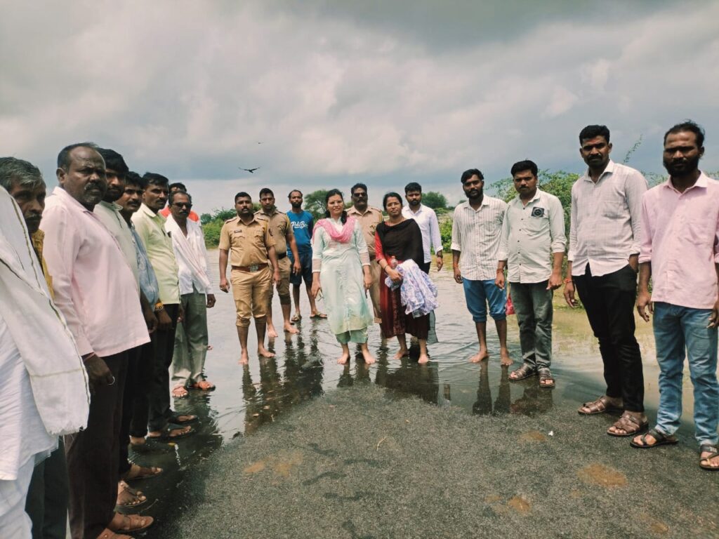 ढगफुटीसारखे पावसाने थैमान घातले असून सिरजखोड व कंदाकुर्ती पुलावरुन गोदावरी नद्यीचे पाणी जात आहे. तसेच छोटे-मोठे पूल पाण्याखाली गेले असून, मनूर, संगम, बामणी गावांचा संपर्क तुटला नदीकिनारी भागातील हजारो हेक्टर शेती पाण्याखाली गेली आहे